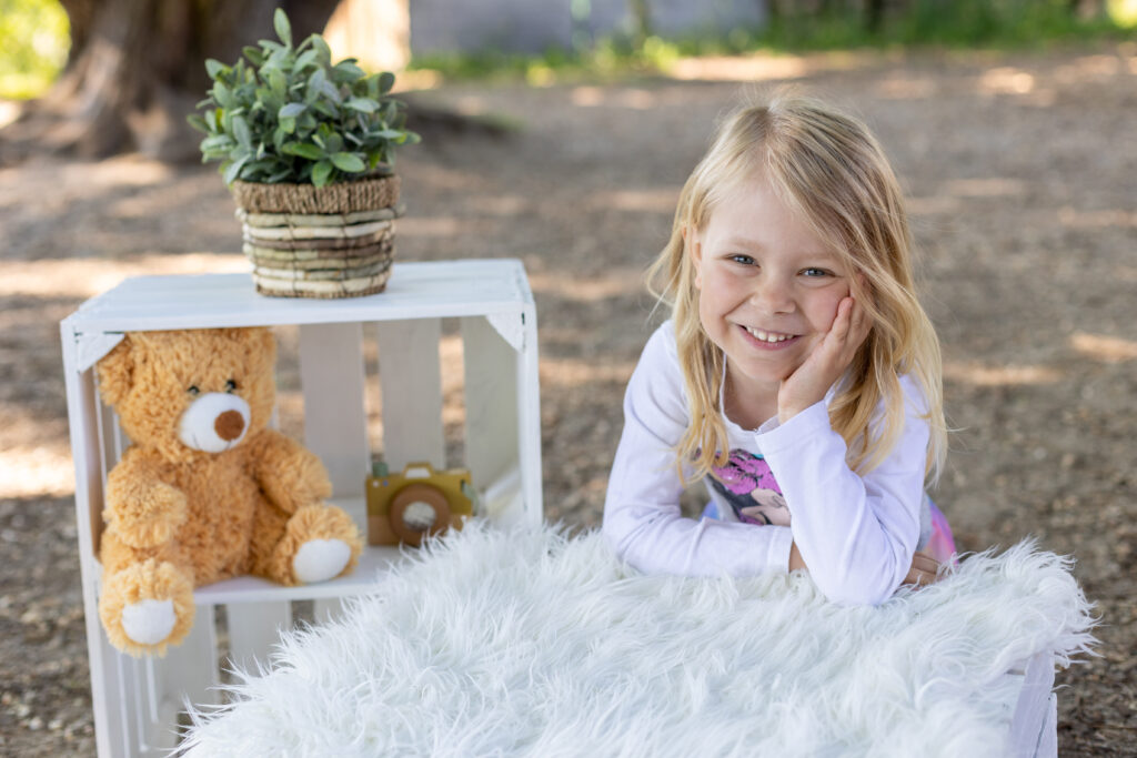 Ich fotografiere die Kinder dort, wo sie sich wohl fühlen – in liebevoll vorbereiteten Fotosets, an vertrauten Lieblingsplätzen oder beim Spielen draußen im Freien.